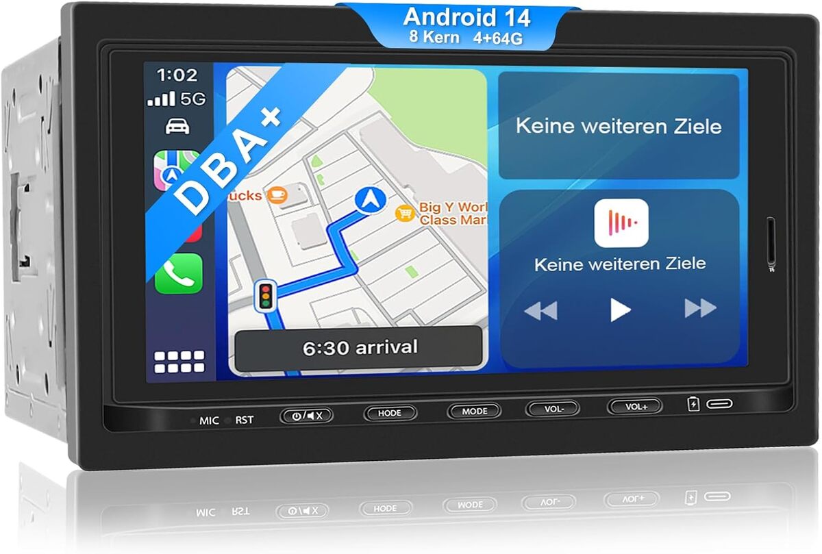 QIIKEN 4G+64G 8 Core (2CA75+ 6CA55) Android 14 Autoradio avec écran, 7 inch Double Din Radio, Autoradio Dab Plus pour la Plupart des modèles, Wireless CarPlay and Android Car, GPS-Navigation
